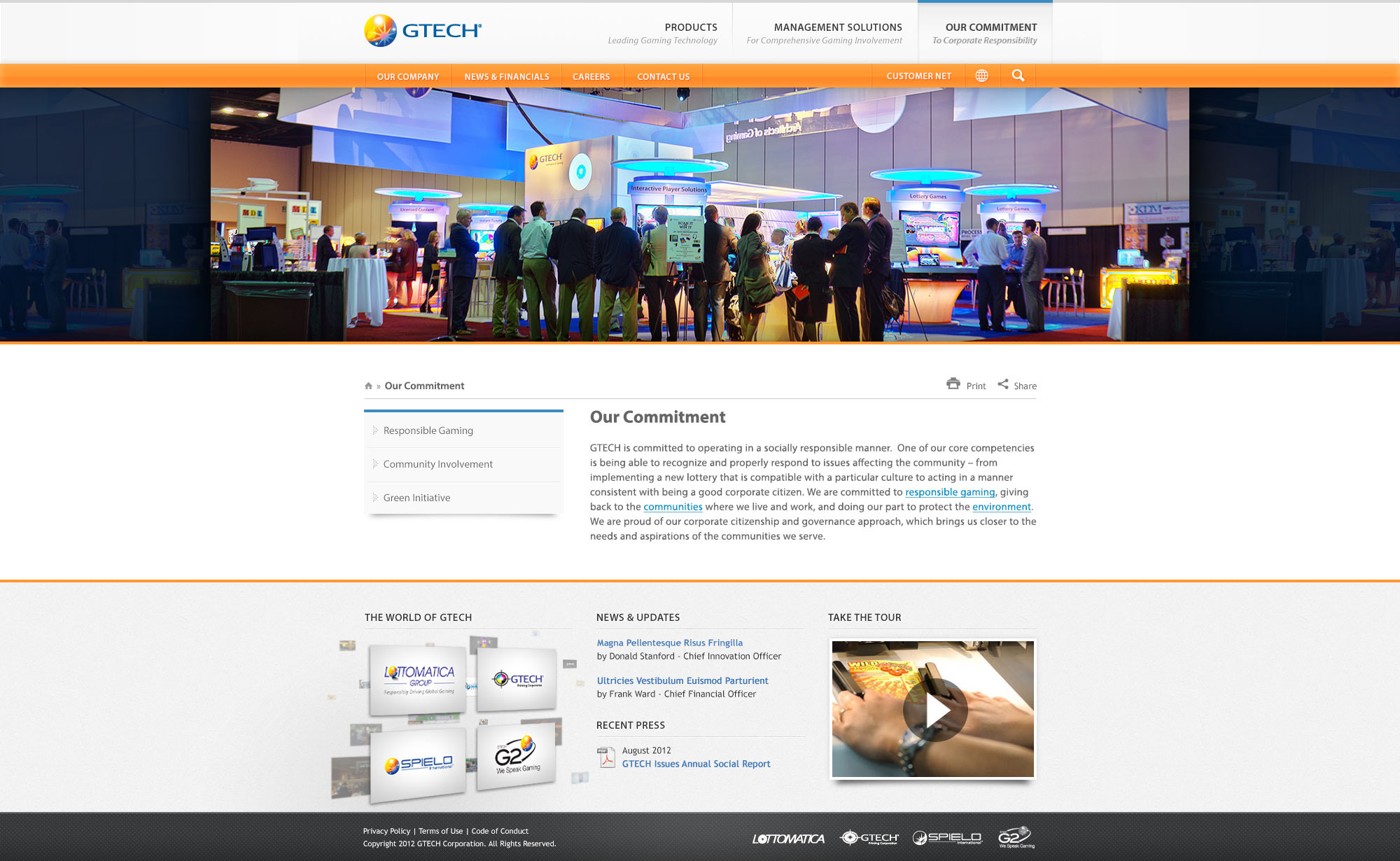 GTECH is a leading international commercial operator and provider of technology in regulated worldwide gaming markets. Though they are privately held they offer many products and services that create over one billion dollars in revenue each year. Their new website affirms their status as industry leaders.